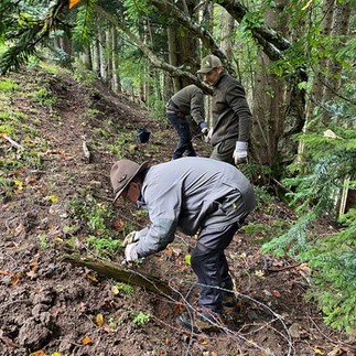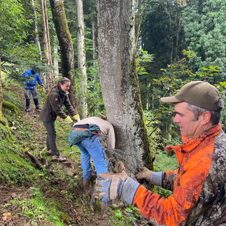 Gais, Samstag, 27. September 2025: Mitglieder der Rhode, Stadt und Vorstadt Altstätten sowie des Patentjägervereins Appenzell-Ausserrhoden haben sich gemeinsam mit dem Pächter und dem Alpmeister auf der Alp Klosmeren bei Gais engagiert, um den Lebensraum für Wildtiere aufzuwerten. Dabei wurde entlang des Waldrandes alter, teilweise in Bäume eingewachsener Stacheldrahtzaun entfernt.